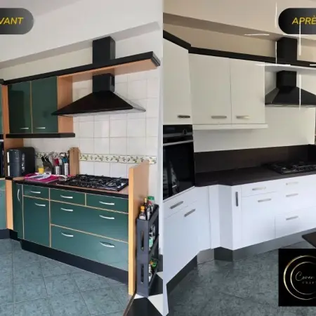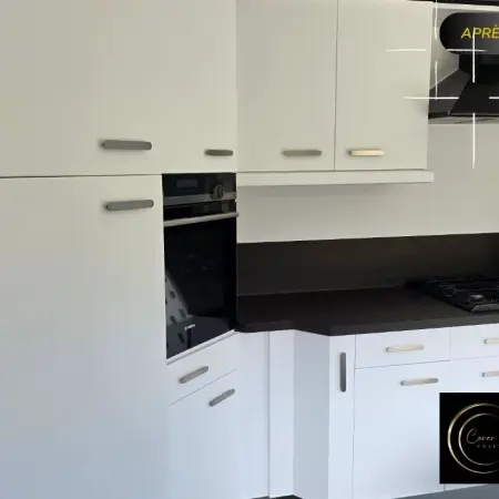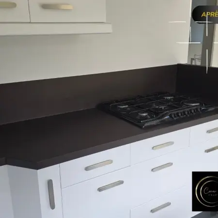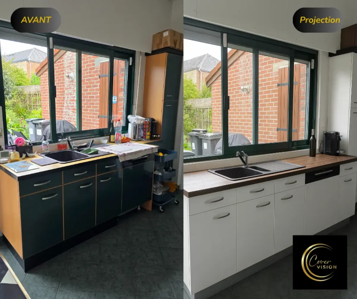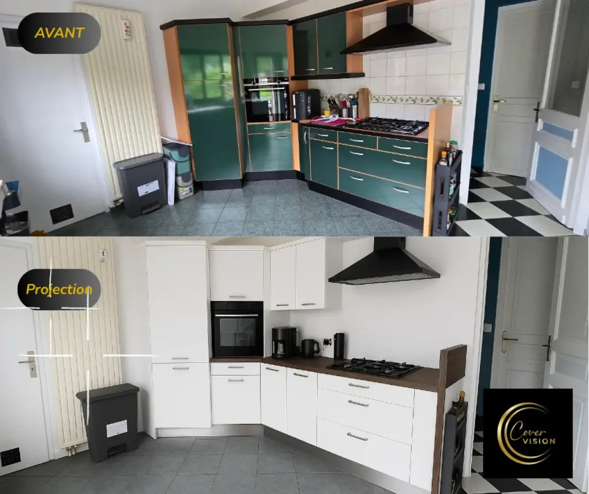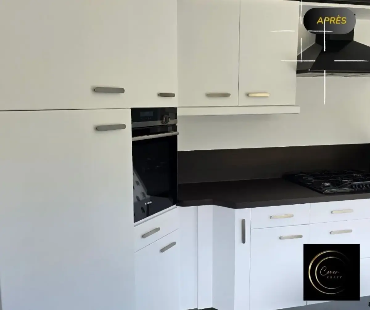 Découvrez la métamorphose de cette cuisine réalisée par Cover Craft : une rénovation complète sans travaux lourds grâce au covering professionnel, à la création d’une crédence sur-mesure en MDF, et à des finissions premium comme les plinthes en effet inox. Une solution durable, moderne et économique.