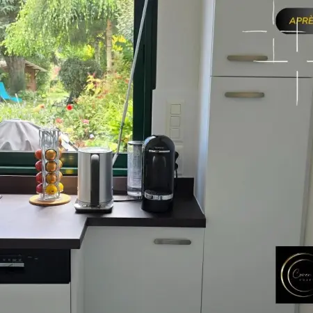 Le tout pour 3100 €, bien moins cher qu’un remplacement complet de cuisine, avec un résultat tout aussi impressionnant.